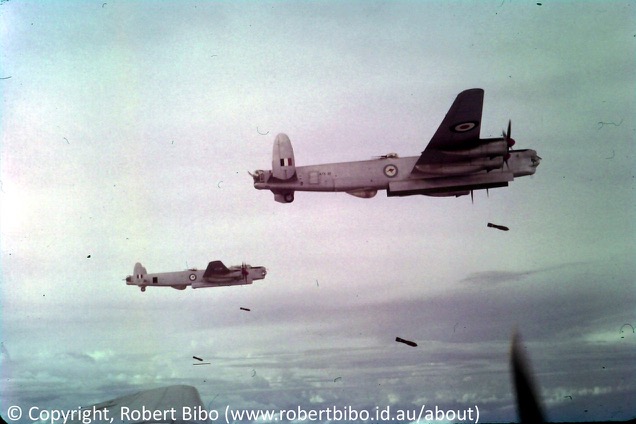 October 1957 above Malaya, RAAF No.1 Squadron dropping bombs.
